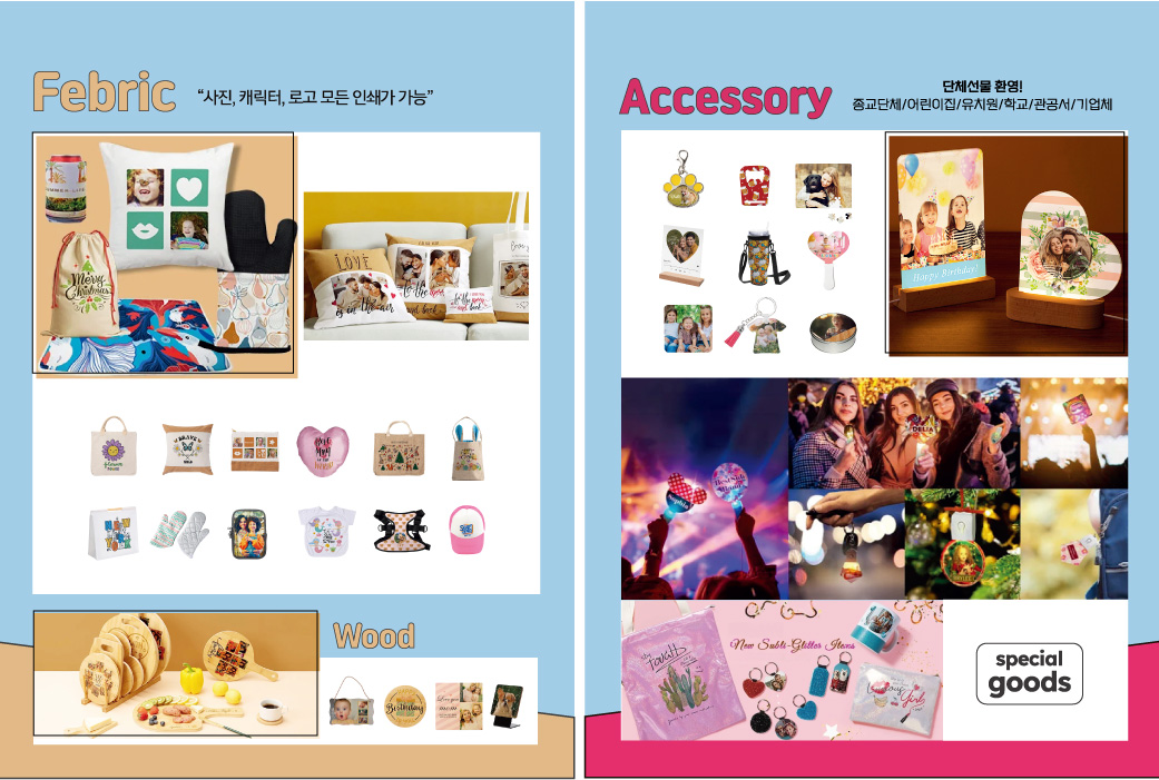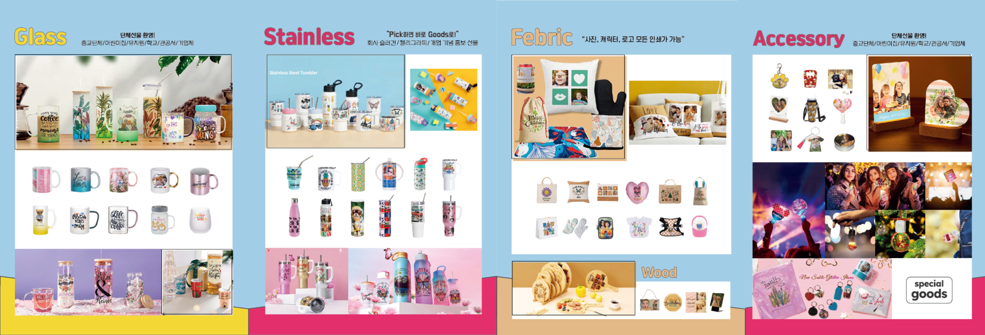 굿즈 제작 장비로 다양한 굿즈 상품을 손쉽게 제작해요.