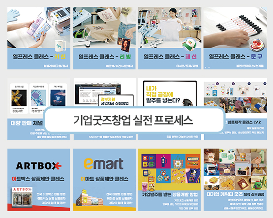 굿즈 제작 기술과 판매 및 운영의 노하우을 전수하는 신개념 방식의 창업을 선도하고 있습니다.