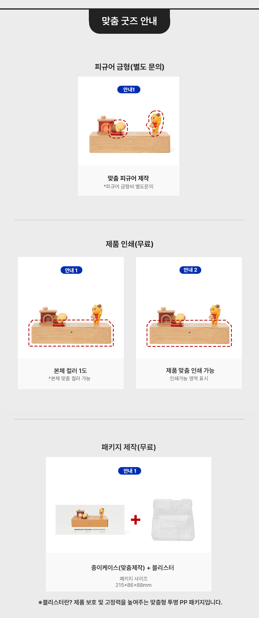 - 디자인/색상/인쇄/패키지 : 커스텀 가능