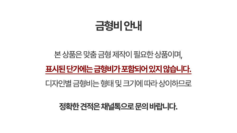 금형비 : 디자인별 금액이 상이하므로 채널톡 문의 바랍니다.