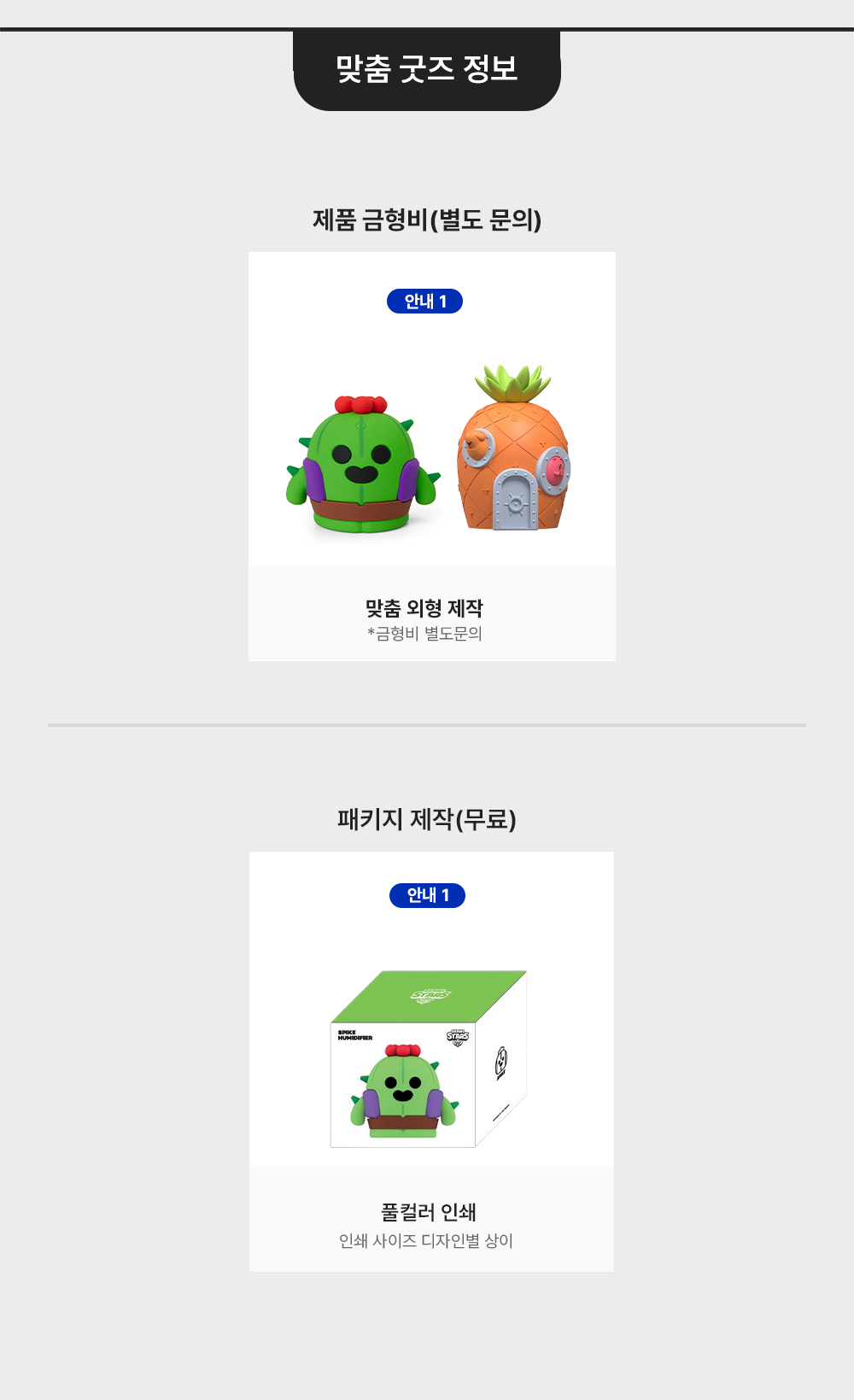 : 보유 중인 캐릭터형 베이스 금형에 귀사 캐릭터만 변경 적용 가능 (비용 절감)컬러·패키지 풀 커스텀 가능
