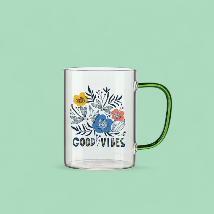 450ml 컬러 손잡이 투명유리컵 (최소 500개)