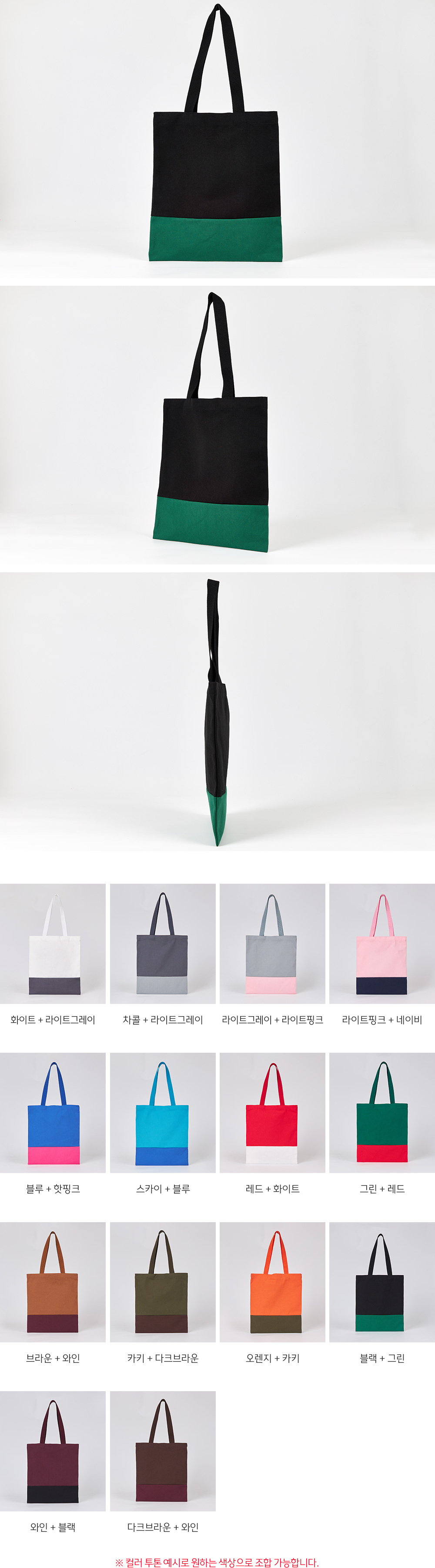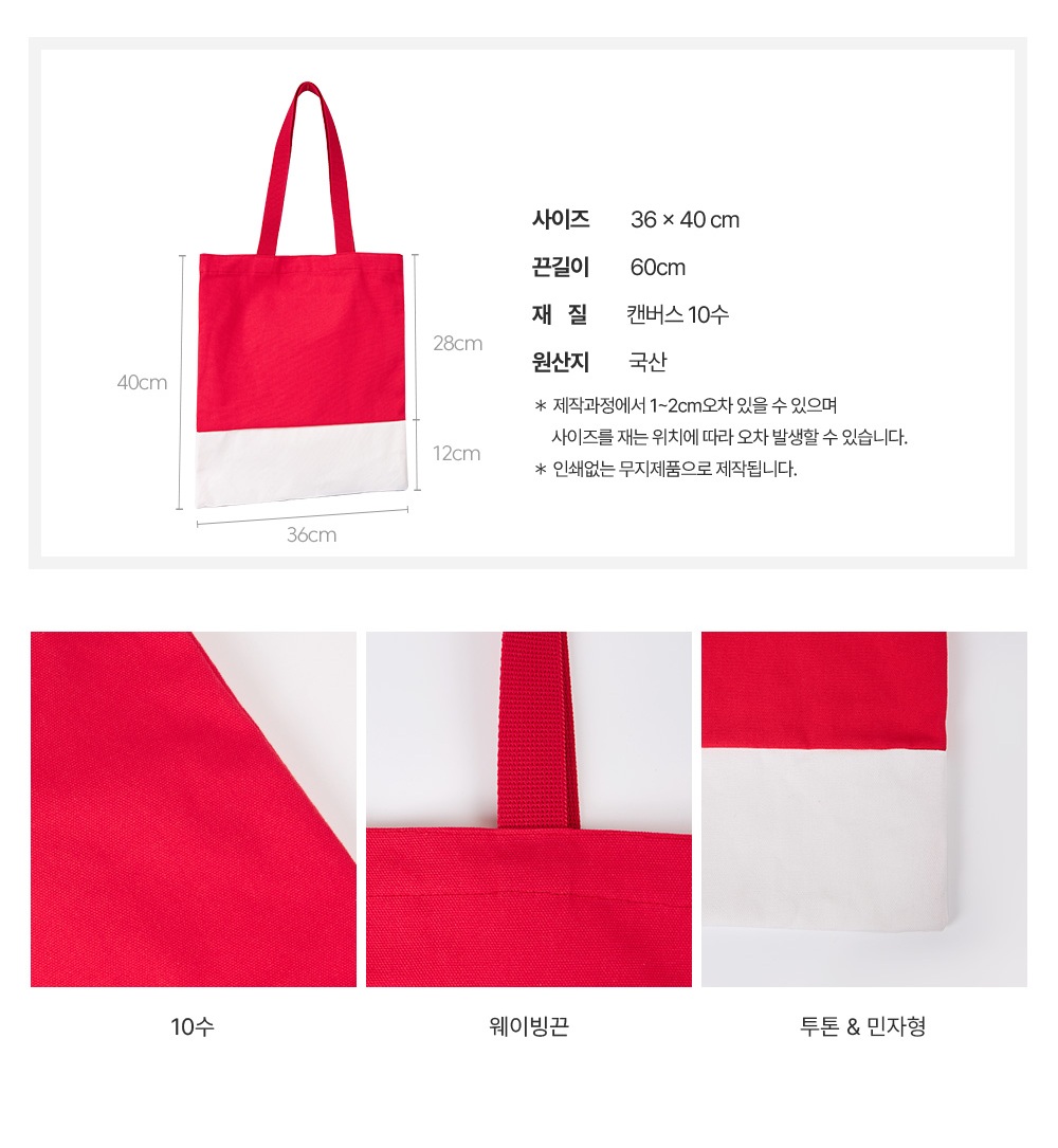 맞춤제작 투톤 에코백 36*40*10mm (최소 100개) (원단, 끈 컬러 선택가능)