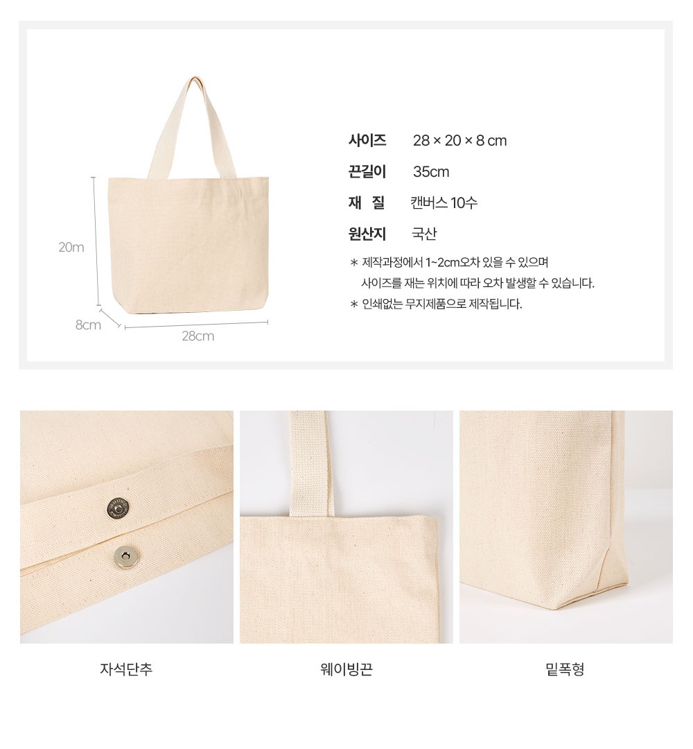 맞춤제작 자석형 에코백 28*20*8mm (최소 100개) (원단, 끈 컬러 선택가능)