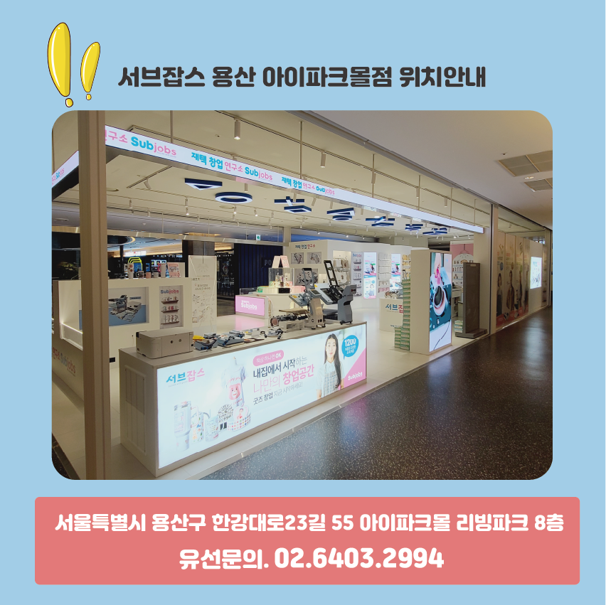 장소 : 용산 아이파크몰 8F 재택창업연구소 매장